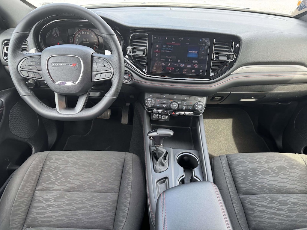 Inside, a 10.1 inch multimedia display with Uconnect 5 Nav puts navigation, Apple CarPlay and Android Auto front and center, backed by SiriusXM with 360L and steering wheel media controls for distraction-reducing ease. The ParkView rear back-up camera simplifies tight parking, and the Dodge Connect emergency communication system adds confidence on the move. Comfort touches elevate every drive, including heated front seats, a heated steering wheel, dual-zone automatic temperature control, and rear air conditioning. Practicality stays top of mind with a power rear gate, power driver seat, remote keyless entry, auto-dimming rear-view mirror, heated exterior mirrors, and speed-sensitive wipers. Safety is supported by multiple airbags including knee airbags, Electronic Stability Control, Traction Control, ABS, tire pressure monitoring, and more. Style gets a factory-tuned upgrade via the Blacktop Package with gloss black exterior mirrors, GT gloss black badging, satin black tail lamp badge, gloss black badges, and black roof rails with integrated crossbars, all finished off with striking 20 inch alloy wheels.
