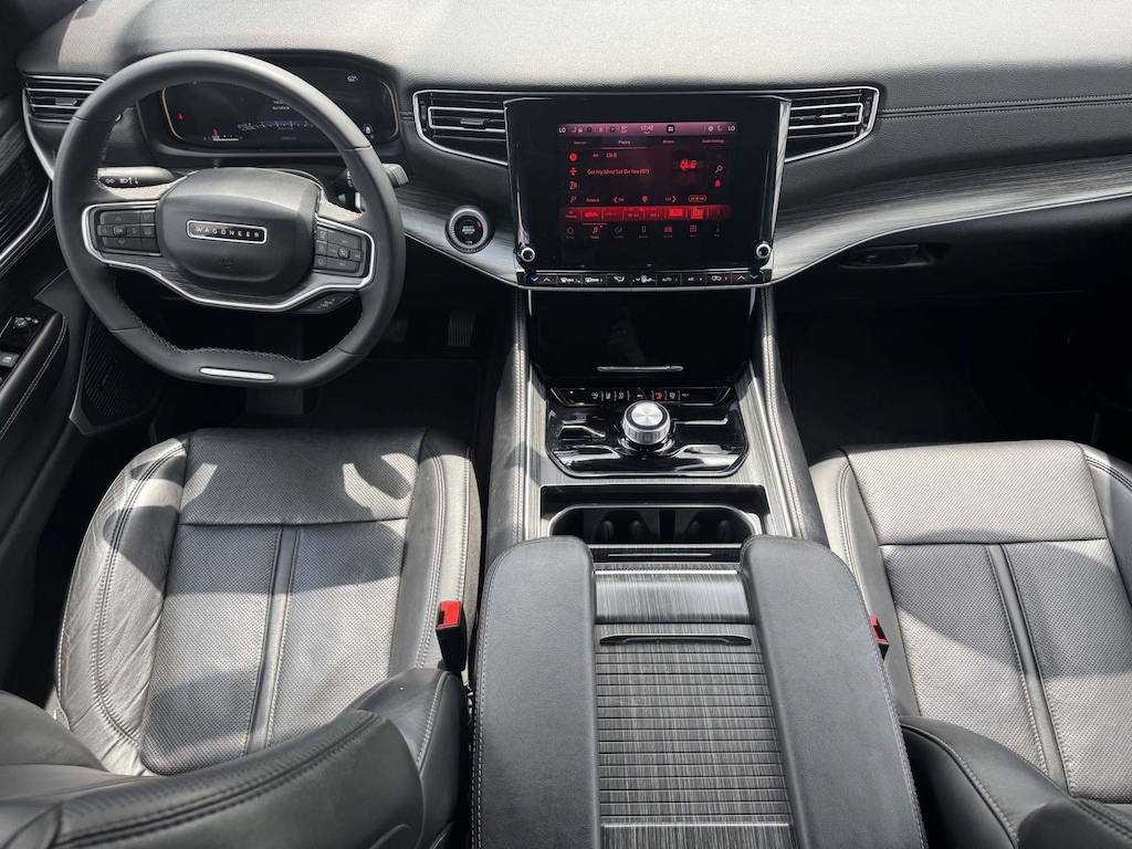 Enjoy intuitive technology and premium comfort features that upgrade every drive. The Uconnect 5 Nav multimedia display with a 10.1 inch screen brings built-in navigation, Apple CarPlay and Android Auto, and SiriusXM with 360L to your fingertips, all supported by steering wheel media controls and audio memory. Leather seats wrap the first and second rows, with heated front seats, heated rear seats, and ventilated front seats for tailored year-round comfort, plus a heated steering wheel for chilly mornings. The power rear gate makes loading groceries or weekend gear easy, and 8-passenger seating with a reclining third row and split-folding capability gives you the flexibility families need. Safety and control are well covered with electronic stability control, traction control, 4-wheel disc brakes with ABS, and multiple airbags including knee airbags. You also get an Exterior Parking Camera Rear, rain-sensing wipers, speed-sensitive wipers, security system, and the Wagoneer Connect emergency communication system. Convenience touches like memory seat and pedal memory, adjustable pedals, auto-dimming mirrors, garage door transmitter, remote keyless entry, and automatic temperature control with front and rear dual zone A/C show off its thoughtful design, and the Premium 20 inch aluminum wheels complete the confident stance & more.